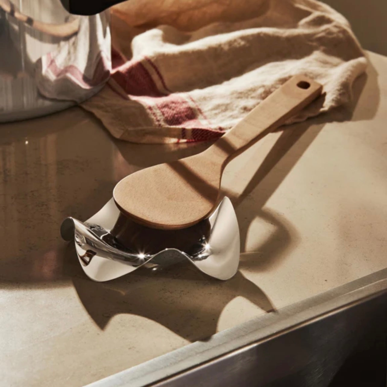 appoggia cucchiaio in acciaio inossidabile 18/10 lucido.