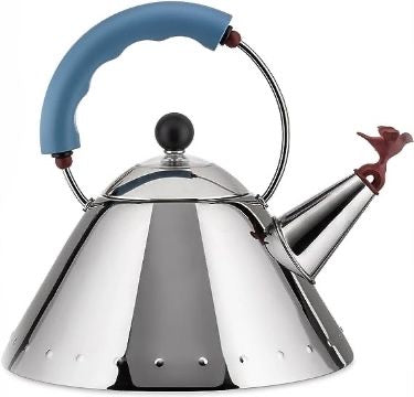 Bollitore in acciaio ossidabile lucido 18/10 con manico e fischietto uccellino in PA,azzurro.fondo in acciaio magnetico adatto alla cottura ad induzione.