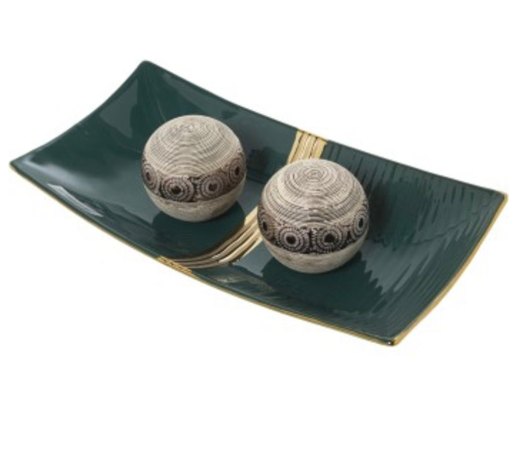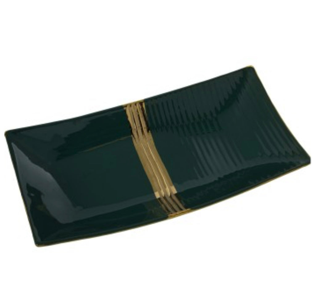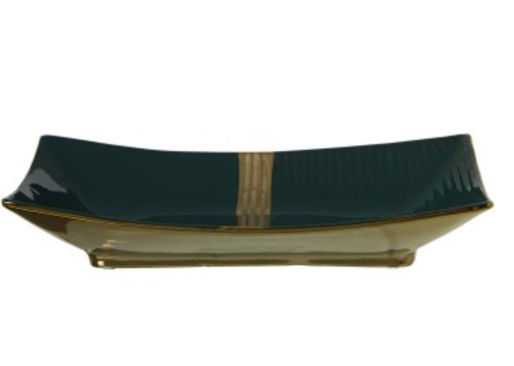 Centrotavola In Ceramica - Verde E Dorato- 40x20x8cm