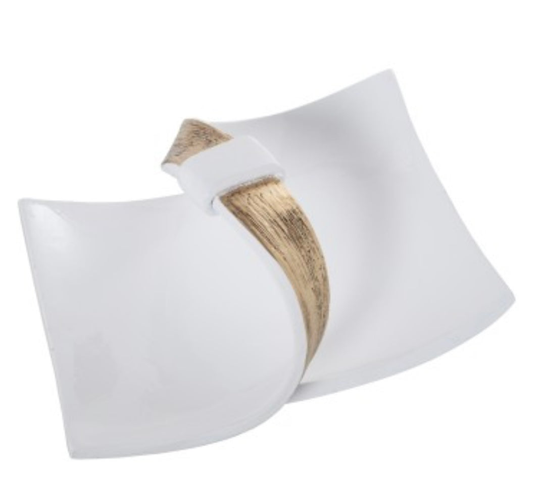 Centrotavola In Ceramica Con Maniglia - Bianco E Oro-