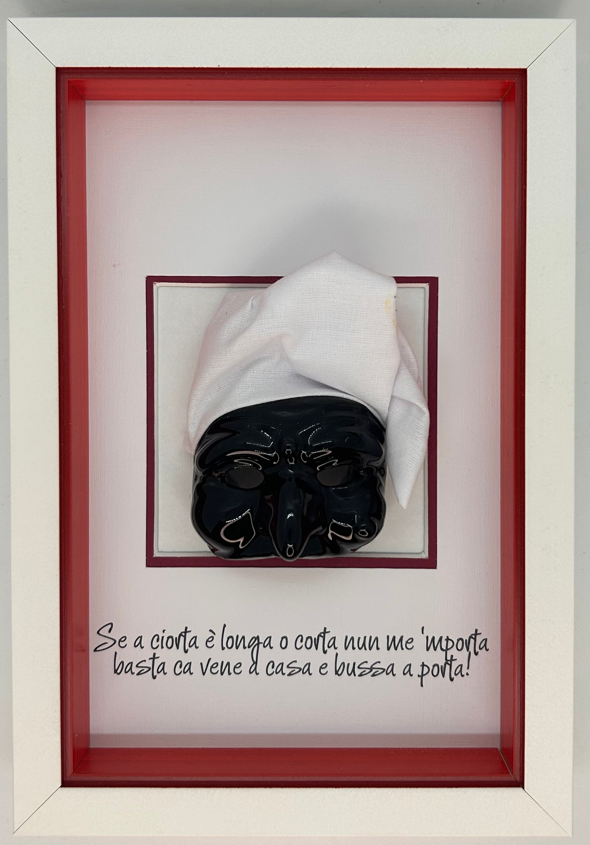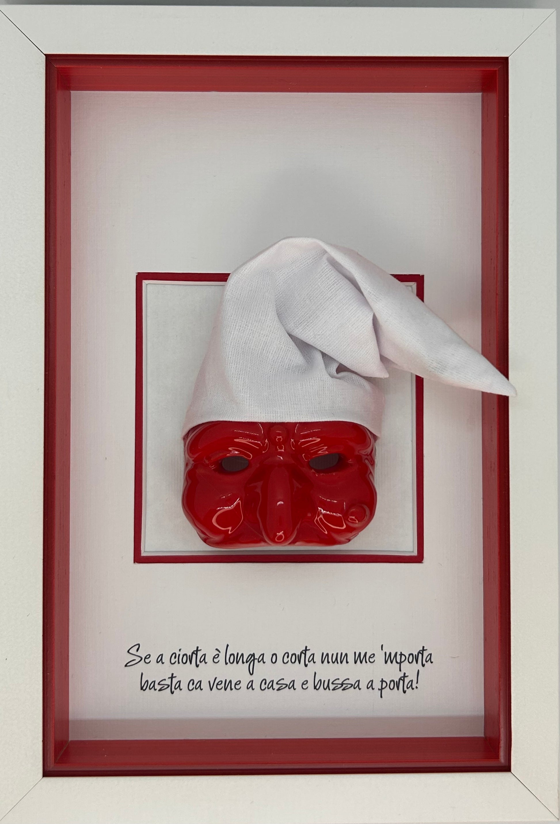 OpenART Quadretto Scaramantico Pulcinella “Se a ciorta è longa o corta nun me ‘mporta basta ca vene a casa e bussa a porta!”